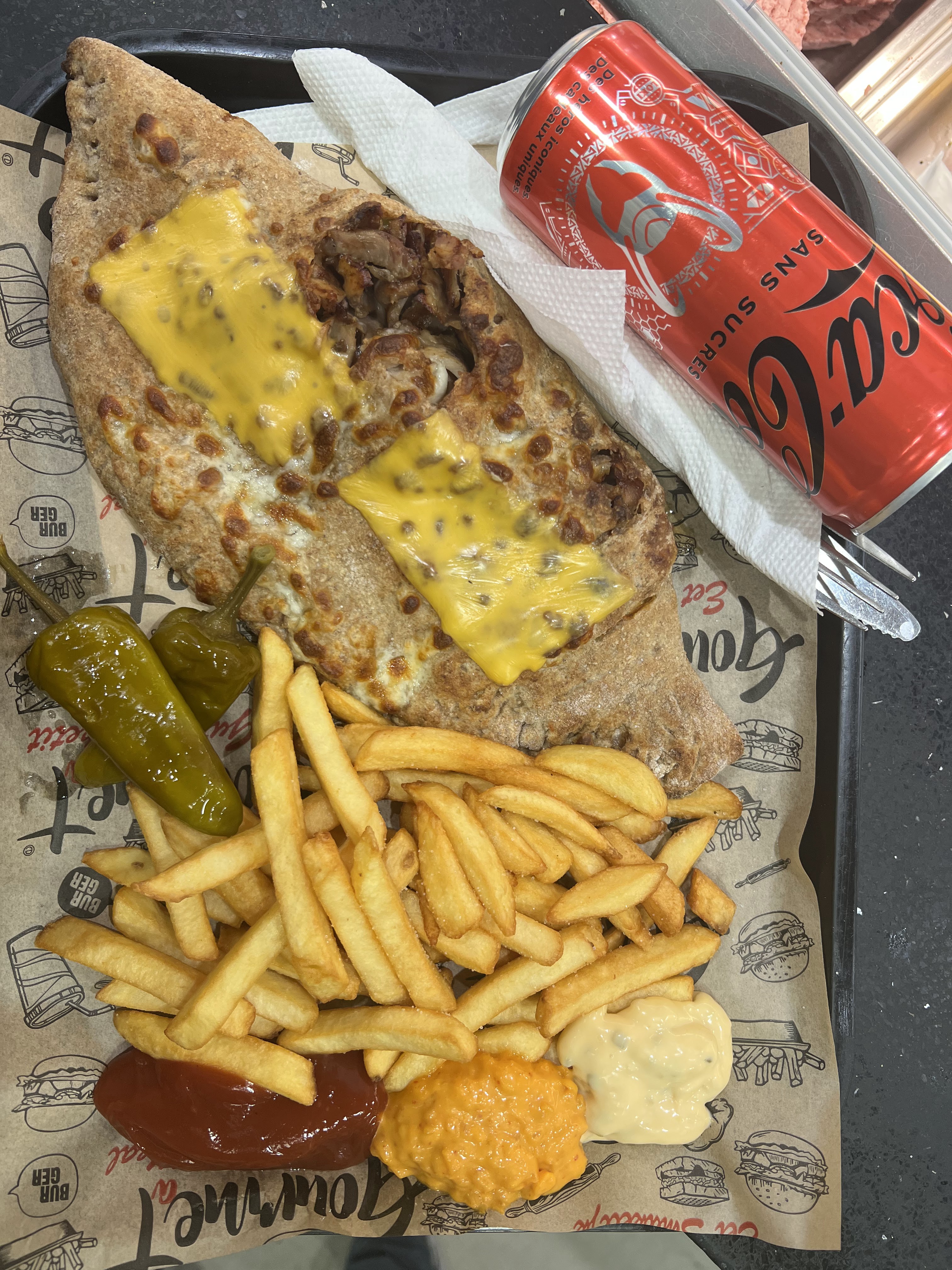 Nourriture pas mauvaise en soi mais un certain manque de goût dans l'assaisonnement de la viande (kébab). Frites noyées dans la sauce, dommage, serait mieux de la mettre séparément.
