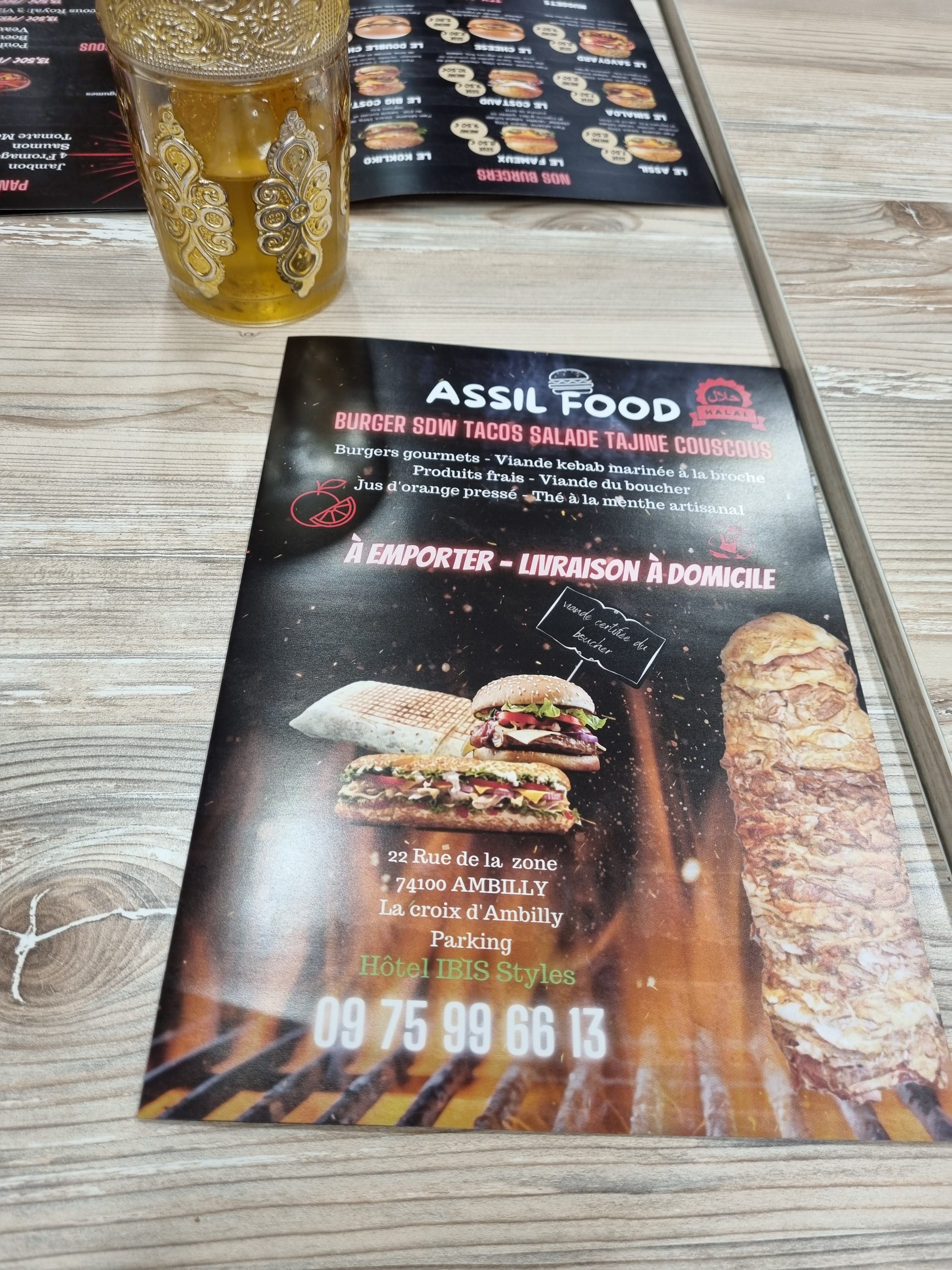 Nous venons de Bordeaux et nous avons passé une semaine à Annemasse tout près d'Assil Food où nous sommes allés 4 fois et nous n'avons jamais été déçus ! Le personnel est sympathique, souriant, et très accueillant. Et nous y avons très bien mangé et le thé à la menthe est un délice ! Merci encore Assil Food pour tout et surtout pour votre gentillesse!