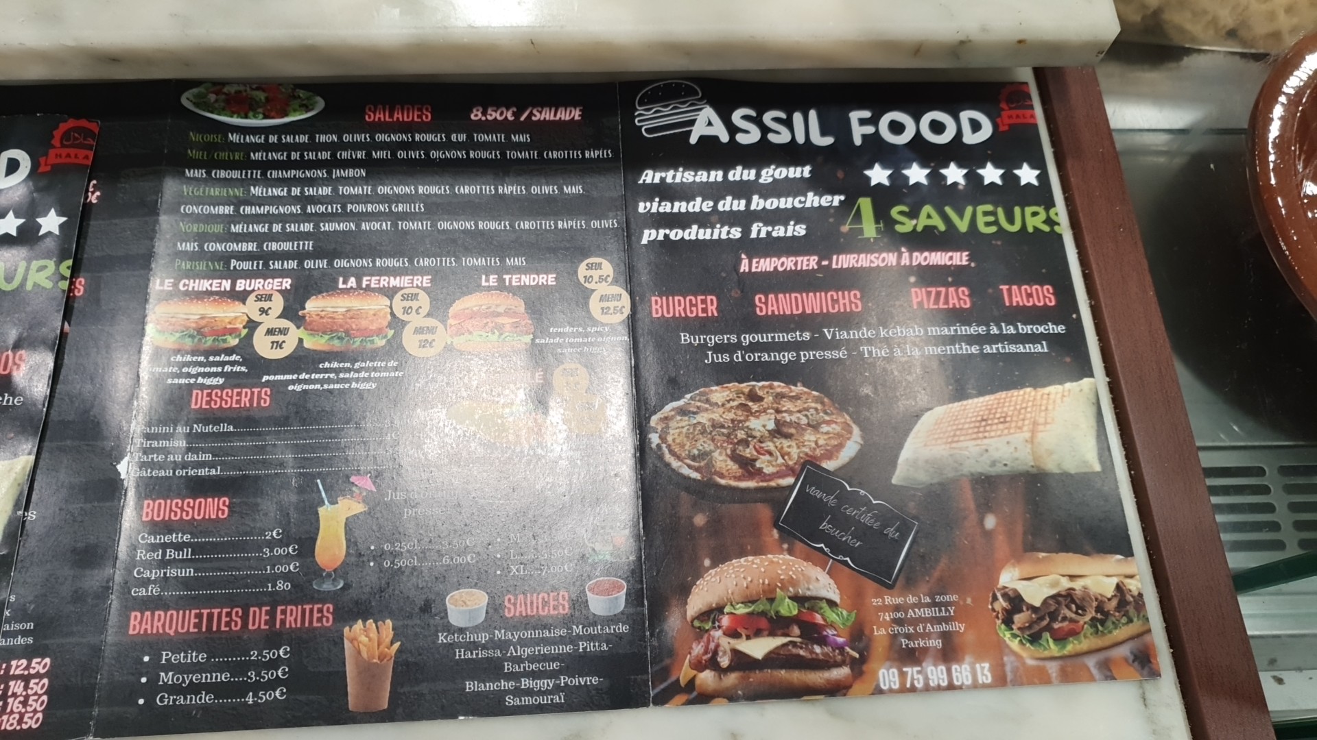 Personnel accueillant, sympathique, il y a un large choix de menu et au niveaux du design sans doute l'un des plus beau Kebab Fast-Food du 74100. Quand on me demande : - Tu connais un bon Kebab sur Annemasse ? Je répond toujours ''Assil Food'' et peut même recharger son téléphone ^^