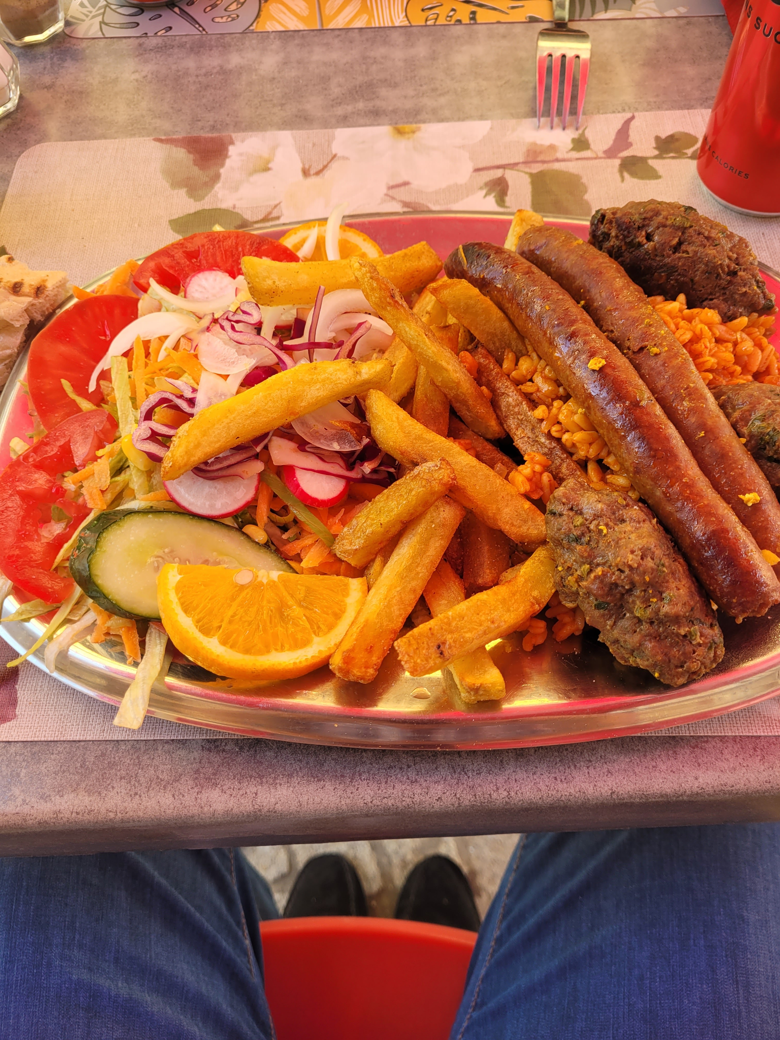 Posté le 21/07/2021 à 22:43"J’ai pris une assiette végétarienne et j’ai beaucoup aimé 🧡 ! les aubergines fondantes, le hoummous, falafel, salade, tout était très bien préparé. Mention spéciale pour les frites, excellentes (et je viens du Nord 😊!) Continuez ! Et n’oubliez pas le tri des déchets ♻️… j’ai eu l’impression que les canettes en aluminium et autres bouteilles en verre partaient à la poubelle classique 🧐 la planète 🌍vous remerciera"