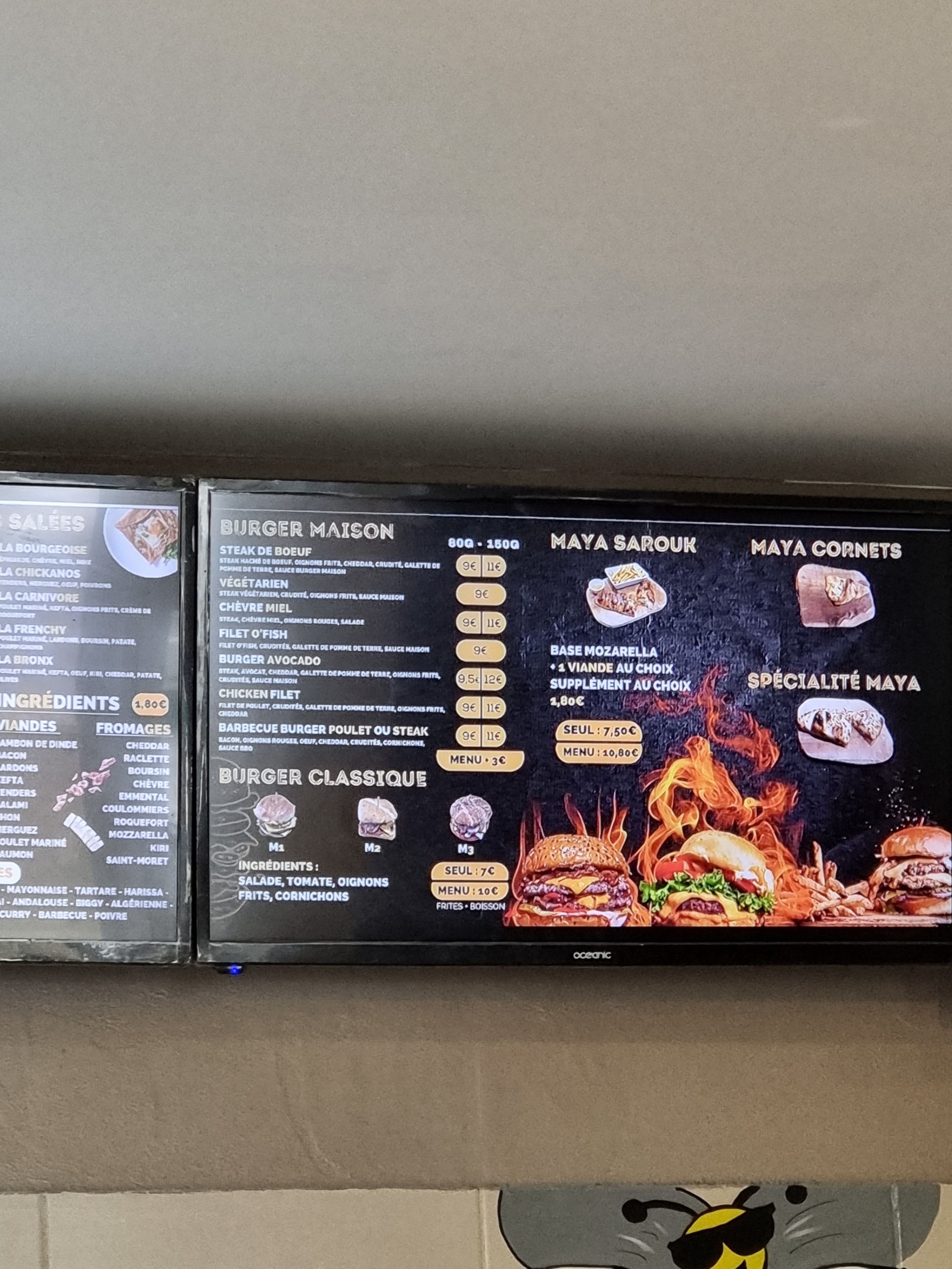 Posté le 06/06/2020 à 10:55"J’ai commandé au moins une 15aine de fois et mangé sur place une fois chez maya aix les bains et À CHAQUE FOIS rien à dire que ce sois l’accueil (la personne au comptoir est très souriante et commerçante) la livraison (livreur très gentil) ou la qualité de la nourriture. Les frites sont bien cuites/dorées , les burger moelleux et la viande comme il faut, les crêpes sont bien garnies et très bonnes. Franchement je conseille a 100%. 😁😁😁 Update : les frites ne sont plus maison depuis quelques temps… dommage. Je sais que cela prend du temps à faire mais c’était un vrai plus…"
