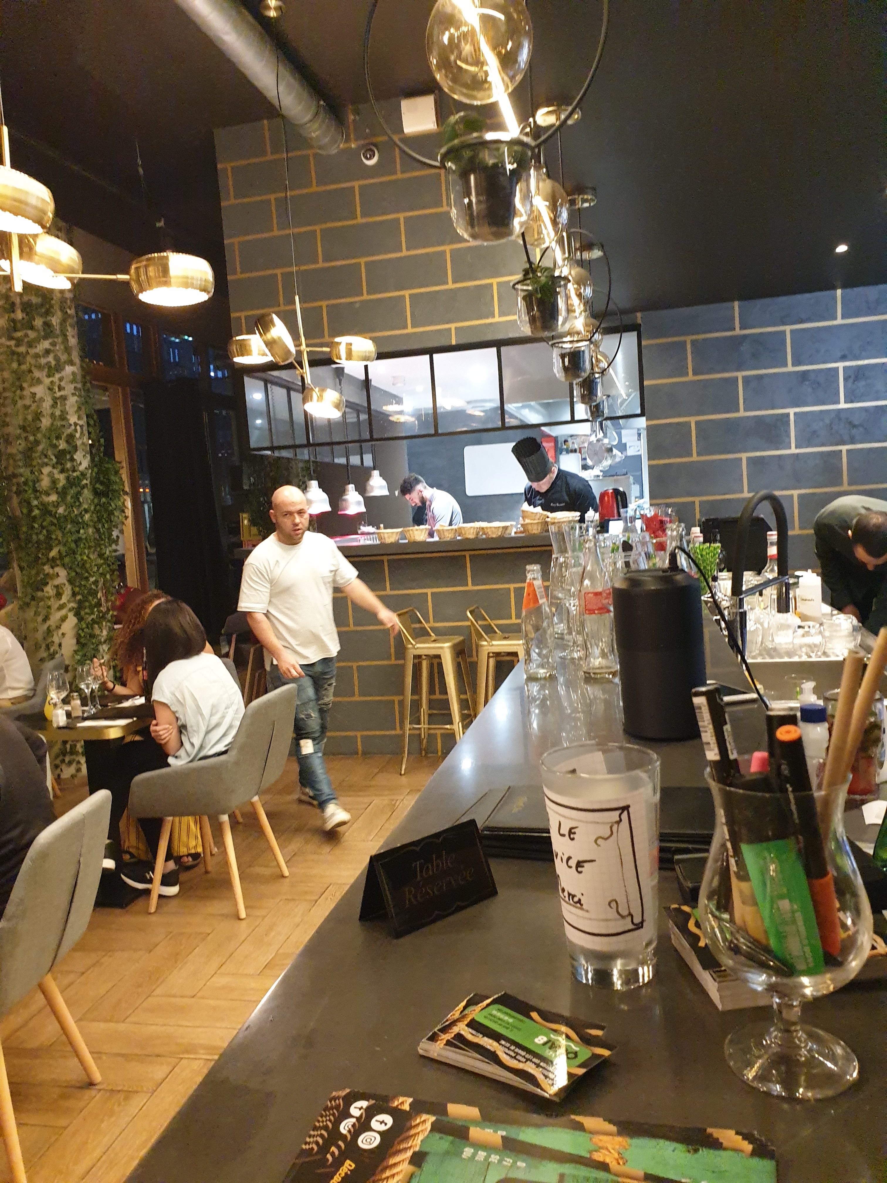 Posté le 20/10/2019 à 19:14"Le restaurant est classe, jolie lumière. Accueil sympa, nourriture excellente. J’apprécie l’idée et la disposition de la cuisine ouverte sur la salle. la musique d’ambiance est sympa. Je conseil cet établissement pour passer un bon moment entre amis, collègues ou en famille."