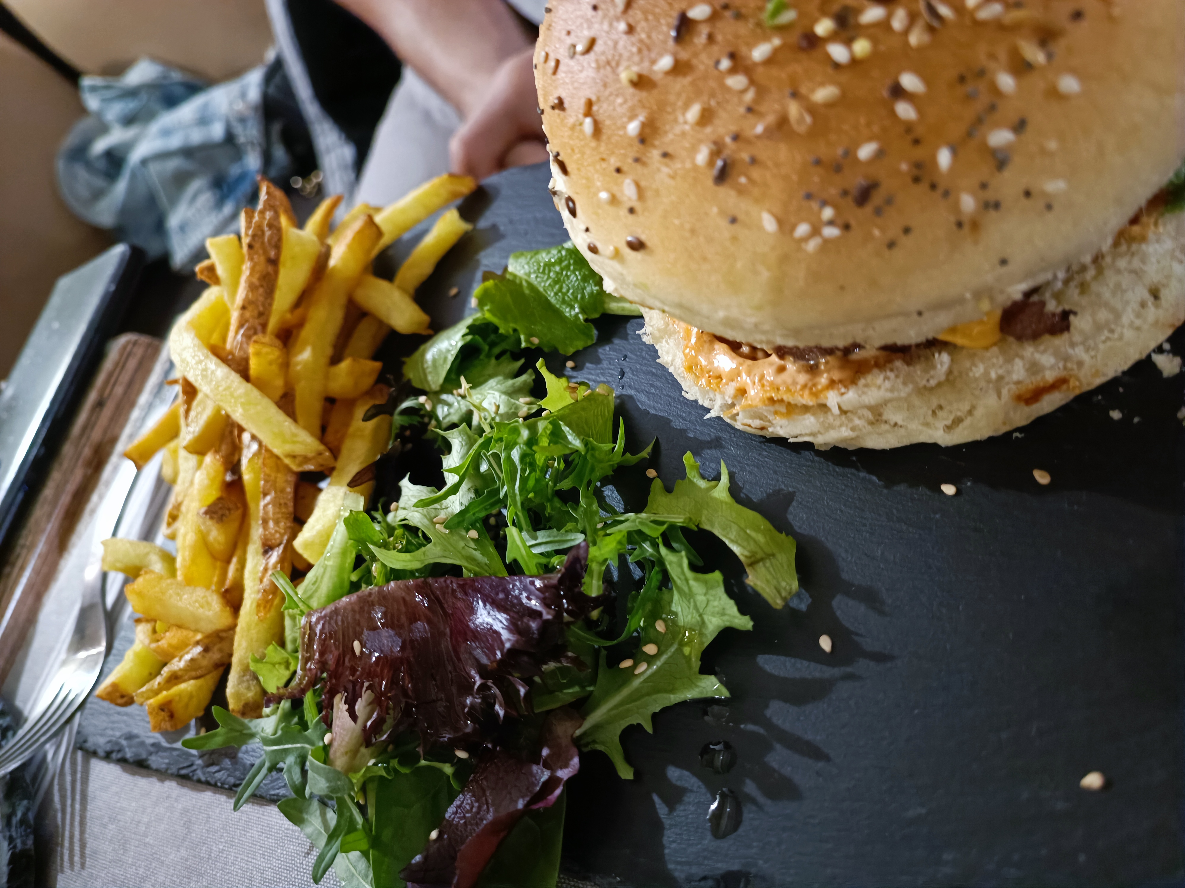 Posté le 08/08/2023 à 15:15"Excellent. J’y suis allez avec mon conjoint et rapport qualité prix excellent je vous le conseille vraiment. Nous avons pris burger maison Classic avec frites maison petite salade d’accompagnement, pour mon mari burger spicy top"