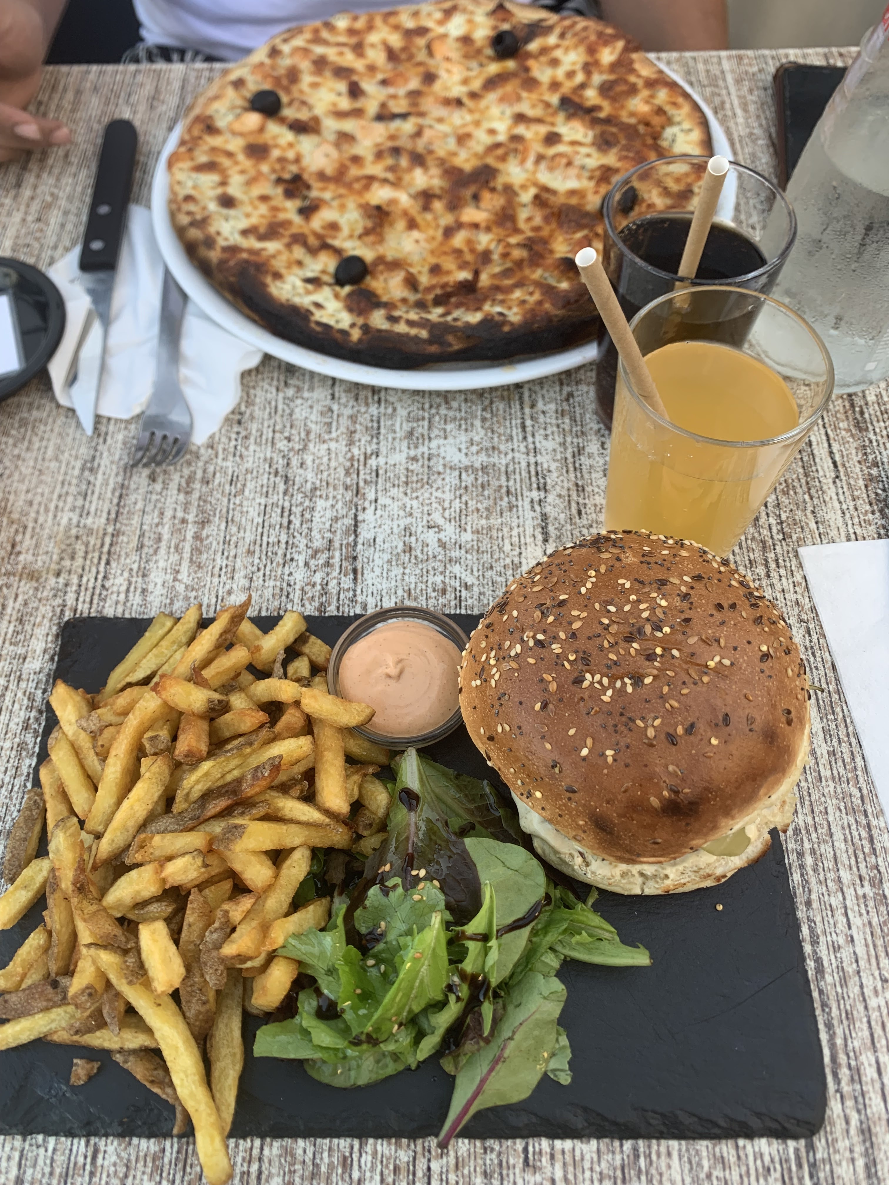 Posté le 20/06/2022 à 11:51"Nouvelle trouvaille sur Palavas ! Nous y sommes allés 2 fois en 3 jours... Tout est bon, la salade césar est top les pizzas magnifiques, la prochaine fois on reste test les burgers ! De plus le personnel est au petit soin je recommande totalement"